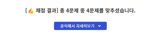 학습 이후 퀴즈풀이 4문제 정답 제출 완료~!!